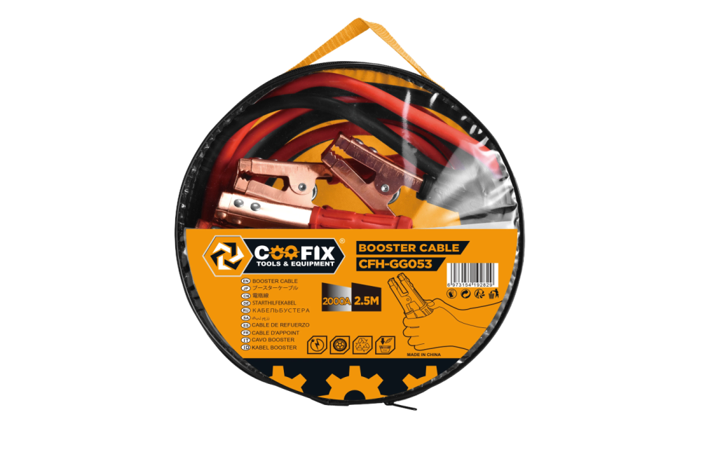 كابل البطارية 2000A؛ أسلاك الألمنيوم المكسوة بالنحاس 22 مم مربع، القطر الخارجي Φ12، مطابقة باللونين الأسود والأحمر، مقاومة درجات الحرارة المنخفضة PVC 25 ℃، لا رائحة لاذعة؛ النحاس المطلي بالحديد للخدمة الشاقة، الطول 16 سم، سمك 1.0 مم، تشاك 1.2 مم؛ الطول الكلي 2.5 متر