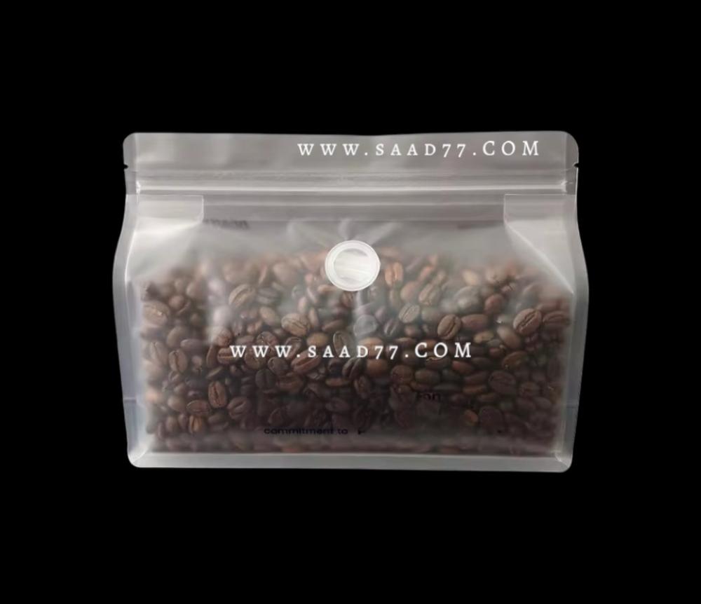 كيس قهوة صمام بلاستيك لون ثلجي شفاف